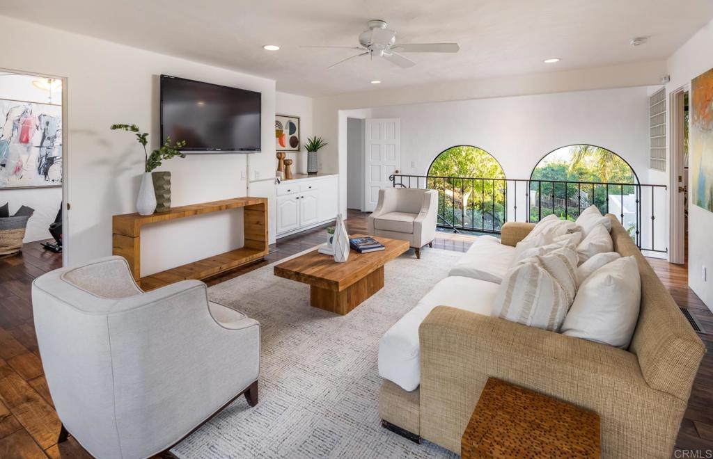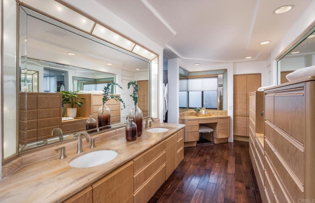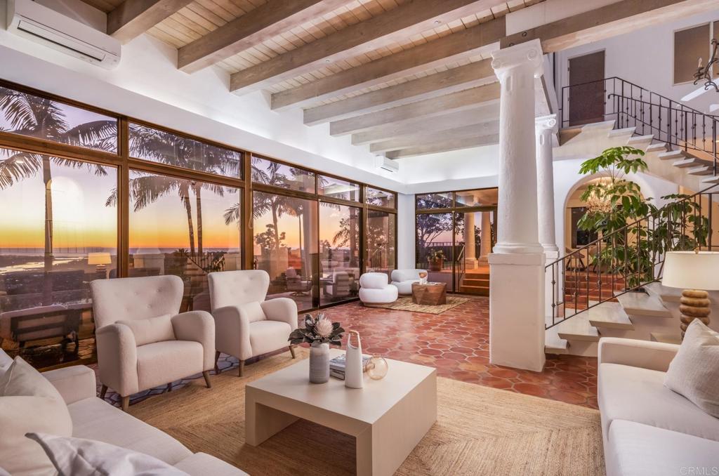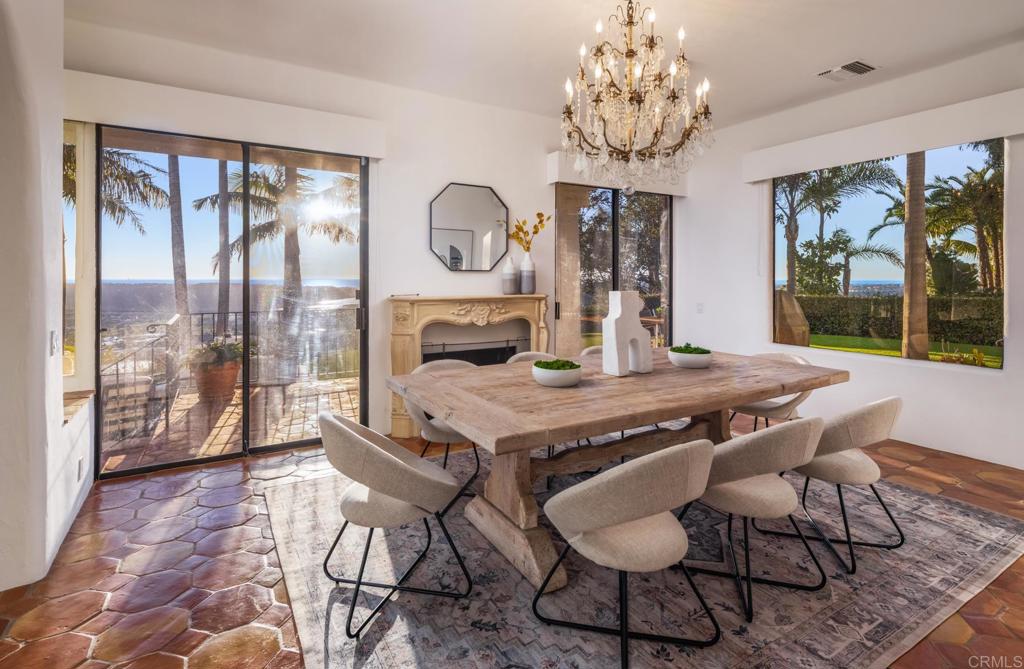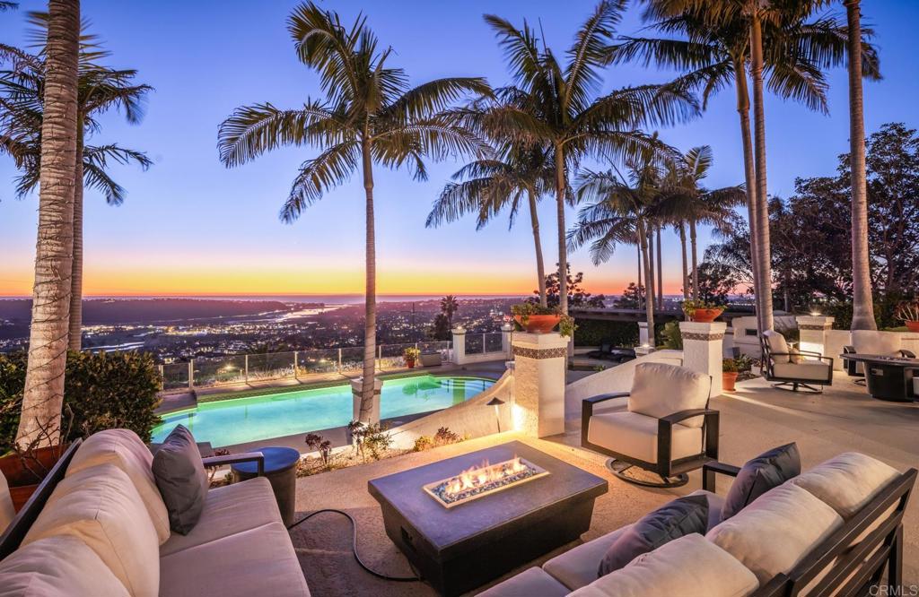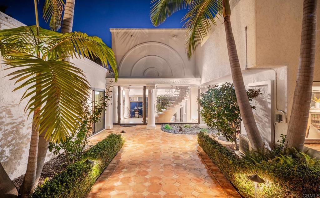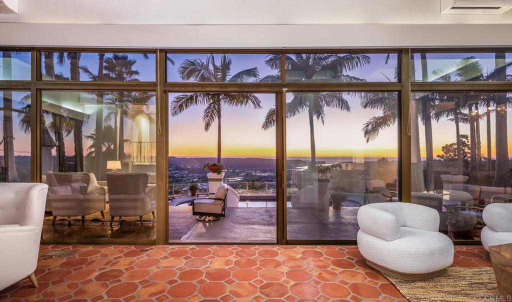 Brilliantly positioned to capture unparalleled lagoon and ocean views that stretch as far as the eye can see. This exceptional gated residence, located within a prestigious enclave of grand La Costa estates, offers nearly 5000 sq ft of sheer opulence. With a generous primary suite, two expansive first floor en-suite bedrooms, two additional second floor bedrooms, a bonus room, and an office, the house caters to a multitude of lifestyles. The magnificent open-concept living room is the heart of the home, adorned with floor-to-ceiling windows that frame the breathtaking panoramas of the expansive backyard, enchanting lagoon, sprawling golf courses, endless sunsets, and ocean views. Cater to your culinary passions in the remodeled chef's kitchen, featuring a large center island and top-of-the-line appliances such as Viking, Sub Zero, Miele, and Wolf, with a 6-burner gas stove, double oven, warming drawer, full-size wine refrigerator, and an array of other high-end amenities. Entertain with ease in the separate formal dining room with a fireplace and adjacent wet bar, or retreat to the outdoor dining area and poolside cabana, all while basking in the rare beauty of unobstructed 180 degree views. A dramatic spiral staircase leads you to the top-floor primary suite, complete with a fireplace and expansive balcony, and a spa-like primary bath with an ocean view bathtub, separate shower, multiple vanities and a large walk-in closet. The second level features a separate wing or in-law suite with two additional bedrooms, a full bath, an office, and a lovely living room, providing ample space for work, relaxation, and entertainment. With a sprawling 37,000 sq ft lot, the nearly one-acre estate is private on all sides, and offers multiple outdoor areas for tranquil enjoyment or hosting gatherings, including a lush side yard with seating area, a large garden with a stone meditation path, and a stunning pool area with cabana and full bath. Additional features include a three-car garage, paid solar panels and pool solar, electric car charger, new HVAC, tankless water heater and more, ensuring every comfort and convenience. This is a rare opportunity to acquire a slice of paradise, conveniently situated near premier shopping centers, golf courses, resorts, schools, theaters, and all the amenities one could desire.